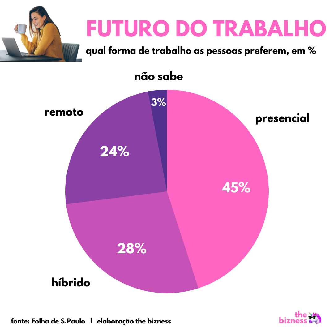 Muitos acharam os novos formatos mais eficientes. Pesquisas internas de diversas empresas mostram que, em geral, eles se sentem mais felizes nos formatos híbridos e remoto.Por outro lado, o trabalho presencial ainda é bastante valorizado e muitas pessoas não abrem mão de ir ao escritório: